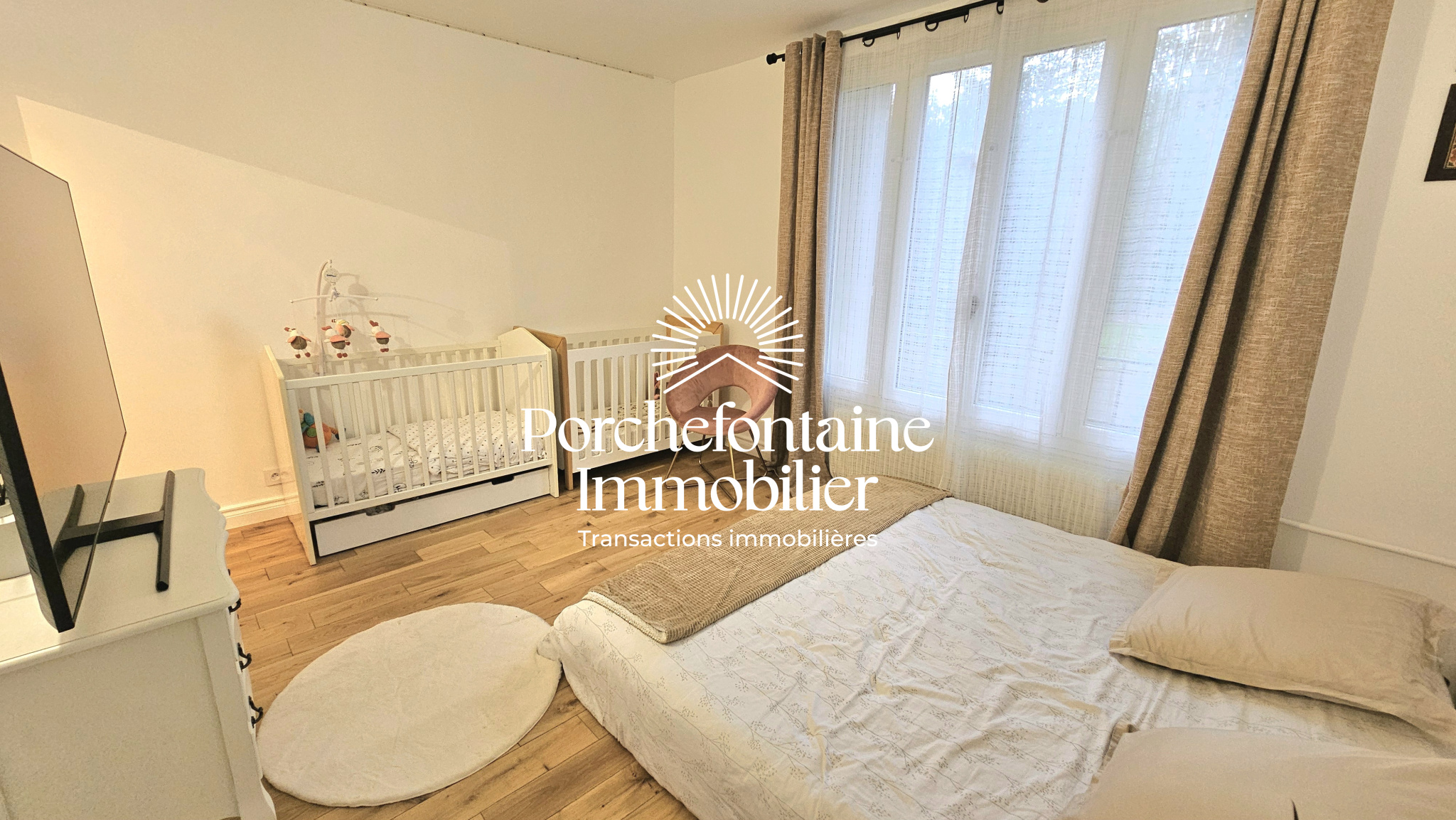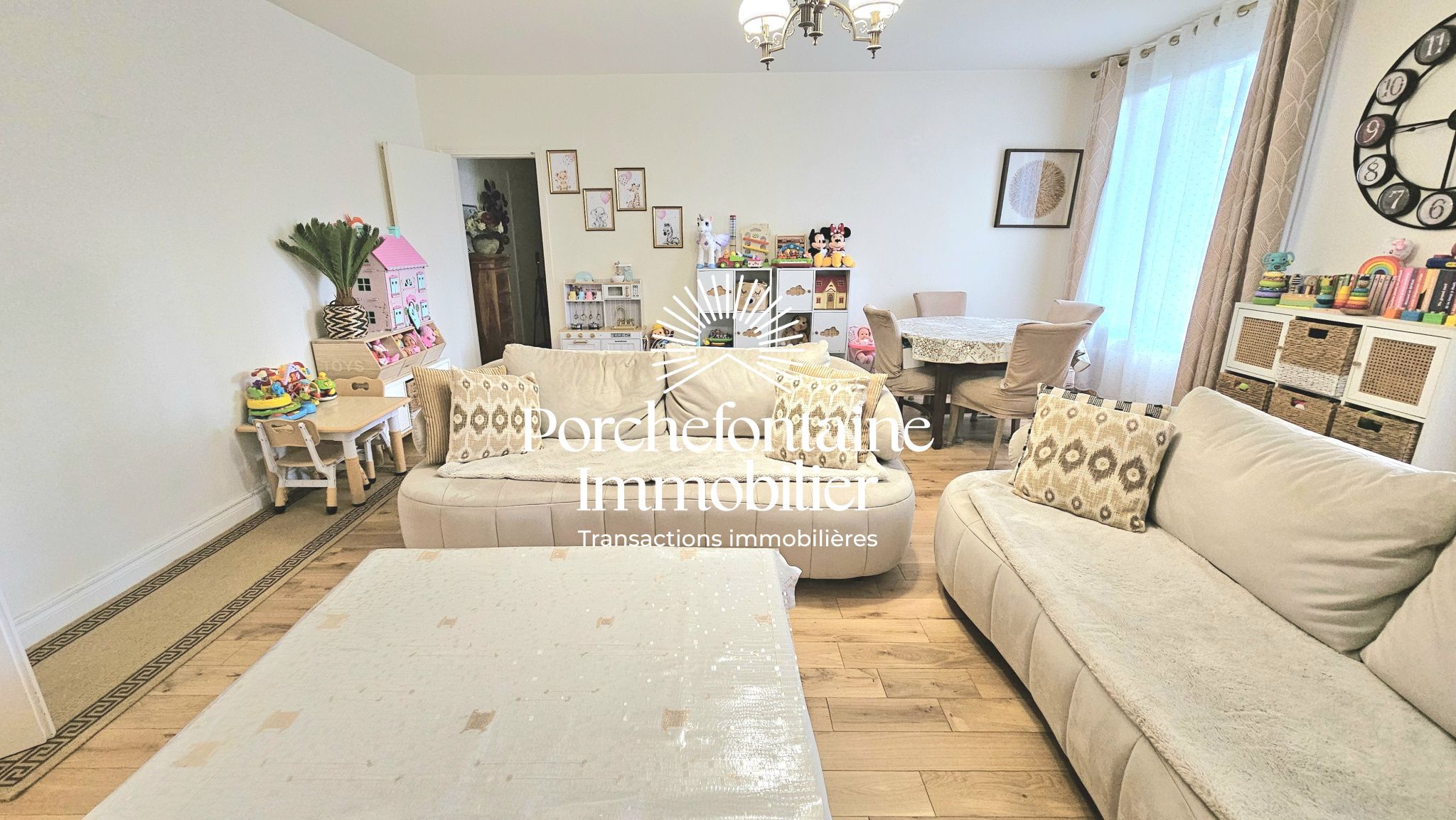 RARE - VERSAILLES Porchefontaine / Avenue de Paris - Les Octrois, dans résidence appréciée et sécurisée, très bel appartement traversant, rénové récemment, en excellent état, bénéficiant d'une triple exposition, de 6 pièces principales, d'une superficie de 126,65 m² Loi Carrez, avec 4 confortables chambres entre 13 et 14 m², situé au rez-de-chaussée d'un immeuble de 4 étages, comprenant : Entrée avec placard, double séjour de 32 m² plein Sud, cuisine dinatoire aménagée avec belle vue dégagée, suite parentale avec sa salle de douche à l'ialienne privative, 3 confortables chambres, dégagements avec placards, salle de bains avec WC, buanderie (salle de douche possible), WC séparés. Agencement apprécié pour l'autonomie de ses différentes parties. Productions de chauffage et d'eau chaude collectives. Grande cave avec électricité et 1 place de parking en sous-sol accessibles depuis l'ascenseur (possibilité d'une deuxième place en option). Copropriété particulièrement bien entretenue. Travaux de toiture et ravalement récents. A proximité immédiate de toutes commodités, gare RER C de Porchefontaine, bus, commerces, écoles avec bonne sectorisation scolaire, activités sportives, stade, tennis, équitation, forêt... Porchefontaine Immobilier, le spécialiste de votre quartier à votre écoute, Achat, Vente, Conseils & Location.